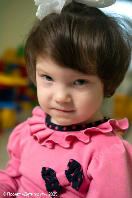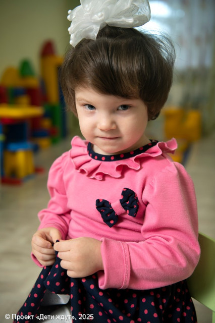 Виктория — живая, сообразительная и очень любознательная девочка, которая с искренним интересом познаёт окружающий мир. Она легко идёт на контакт, сама часто проявляет инициативу в общении и уверенно обращается с просьбами. Вика очень ласкова и эмоциональна, ей важно внимание взрослых, и она обожает тёплые объятия. Эта чуткость проявляется и в отношениях с другими детьми — Виктория умеет проявлять о них заботу. На занятиях она внимательна, собрана и активна. Новую информацию девочка схватывает буквально на лету, и ей редко требуется повторение, чтобы во всем разобраться. Вика хорошо понимает обращенную к ней речь, а сама говорит вполне понятно, часто комментируя свои действия во время игры, общаясь с другими детьми или куклами. У неё есть любимые игрушки — куклы и мягкие зверята. Девочка с удовольствием играет с водой и песком, любит лепить из пластилина, рисовать и заниматься аппликацией. В быту Вика уже многое умеет делать сама: она аккуратно кушает, просится в туалет, убирает за собой игрушки и почти самостоятельно одевается, нуждаясь лишь в небольшой помощи взрослого. На прогулках, которые она просто обожает, Вика уверенно катается на самокате и осваивает трёхколёсный велосипед.